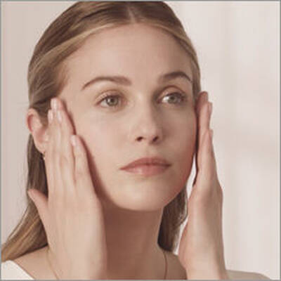 - Use your niacinamide-based serum: Dispense two pumps of the Rénergie H.C.F. Triple Serum into your hands, then mix. Apply onto your face and neck, using outwards and upwards motions.